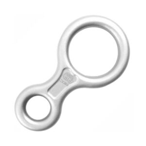 Descensor clásico en forma de ‘8’. Ideal para la seguridad del primero de cordada, para el uso en descenso con cuerda doble, cuerda simple y en rápel.